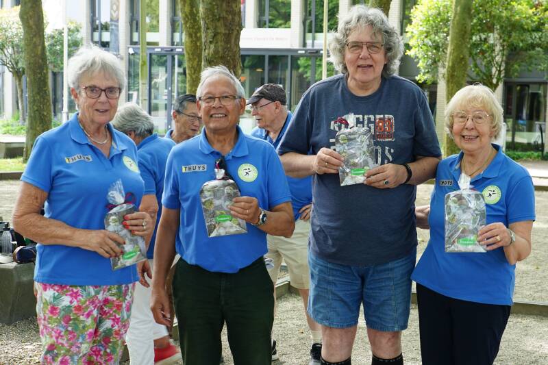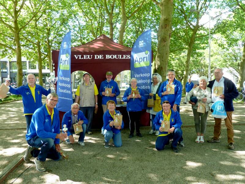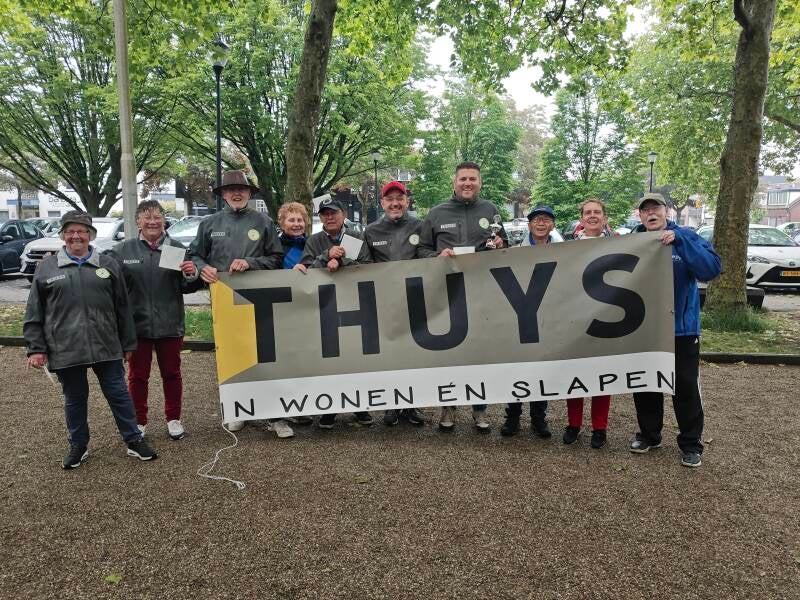 Het bestuur van Vleu de Boules kijkt terug op een geslaagd toernooi met dank aan de sponsor, Thuys in Wonen en Slapen uit Vleuten voor het beschikbaar stellen van de mooie prijzen voor de winnende teams.
